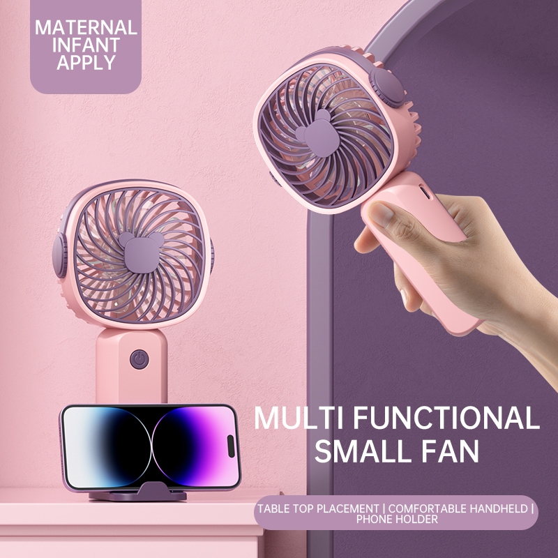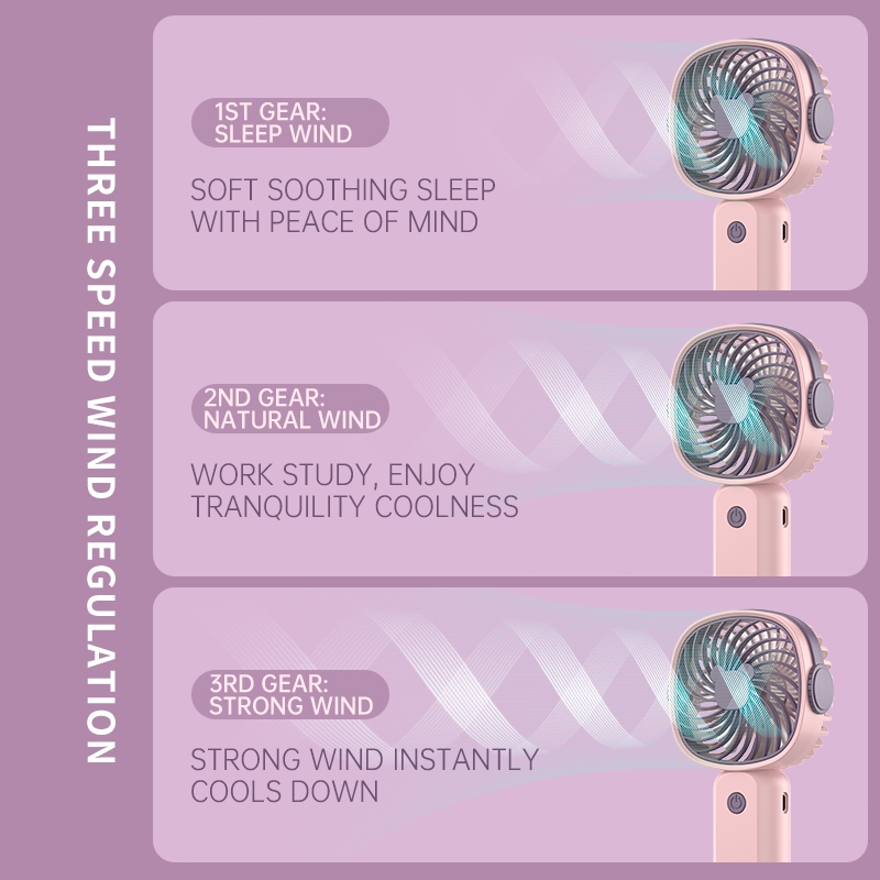Kipas Angin Portable / USB Mini Hand Fan 3-Speed Kipas Genggam Wind Leher Kipas