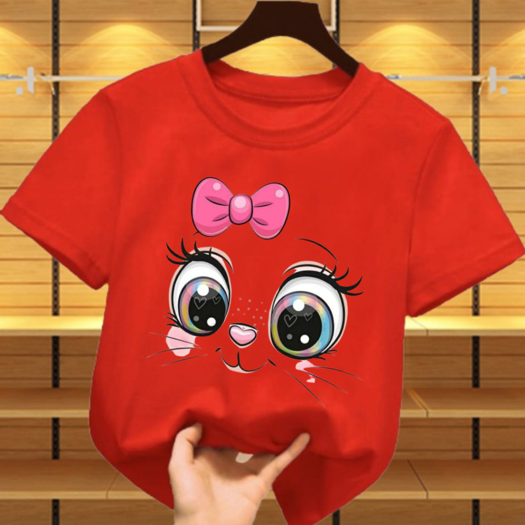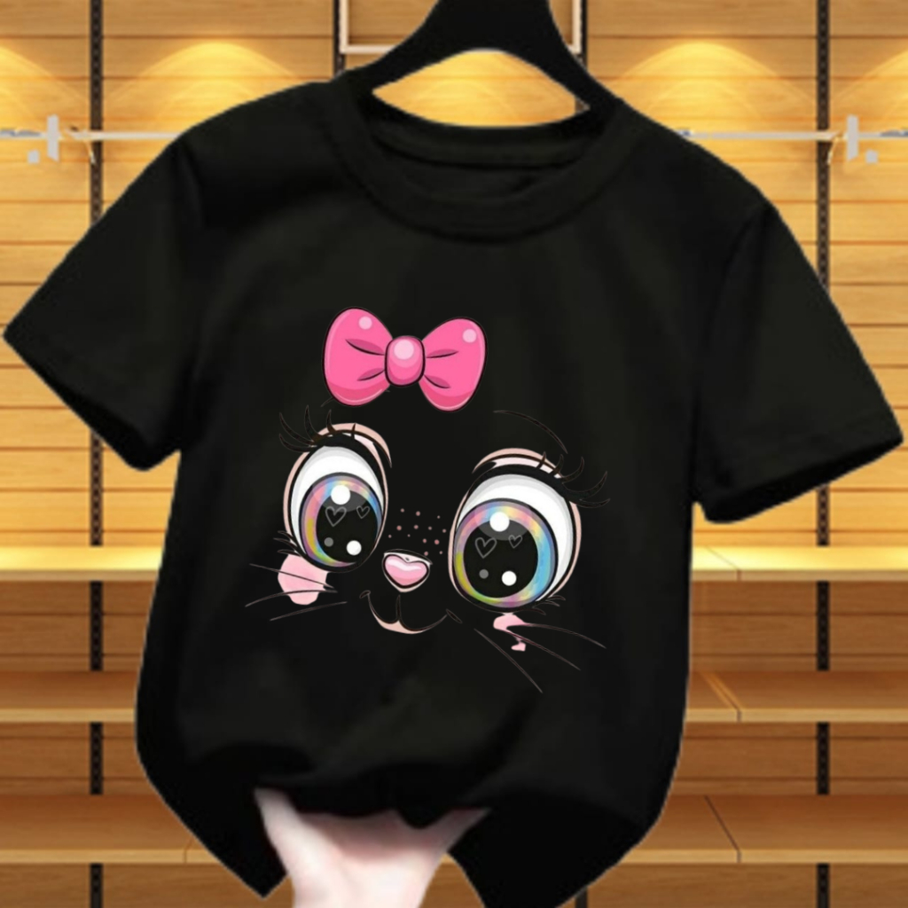 Kaos Atasan Anak Perempuan Motif Little Cat Kucing Kece Lucu Usia 2-12 Tahun Oblong Baju Cewek Lengan Pendek Tshirt