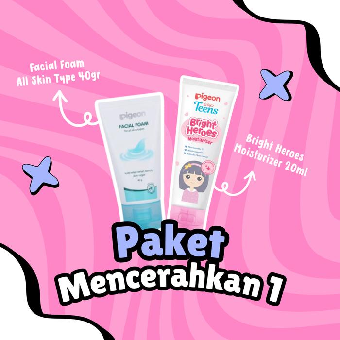 Pigeon Teens BRIGHT HEROES SERIES Skincare SET Paket Mencerahkan Wajah Remaja Niacinamide Infused