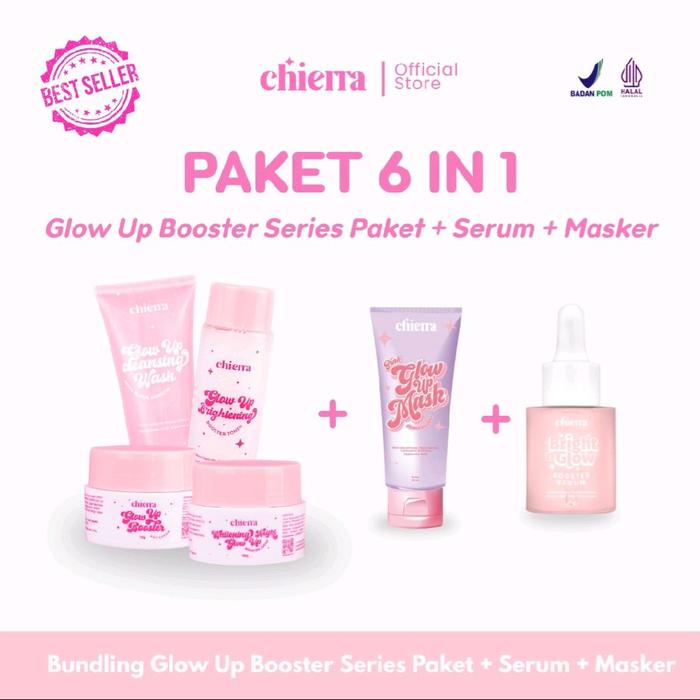 Chierra Paket 6 in 1 Glow Up Booster Series Perawatan Mencerahkan Wajah dengan Booster Serum & Clay