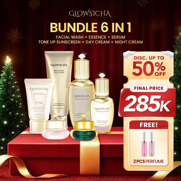 FREE 2pcs Perfume Glowsicha Bundle 6 in 1 Facial Wash + Essence + Serum + Night Cream + Day Cream +
