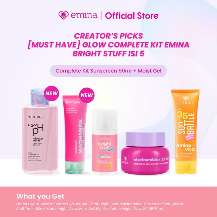 Creator's Pick MUST HAVE GLOW COMPLETE KIT EMINA BRIGHT STUFF ISI 5 Micellar Water, Face Wash,