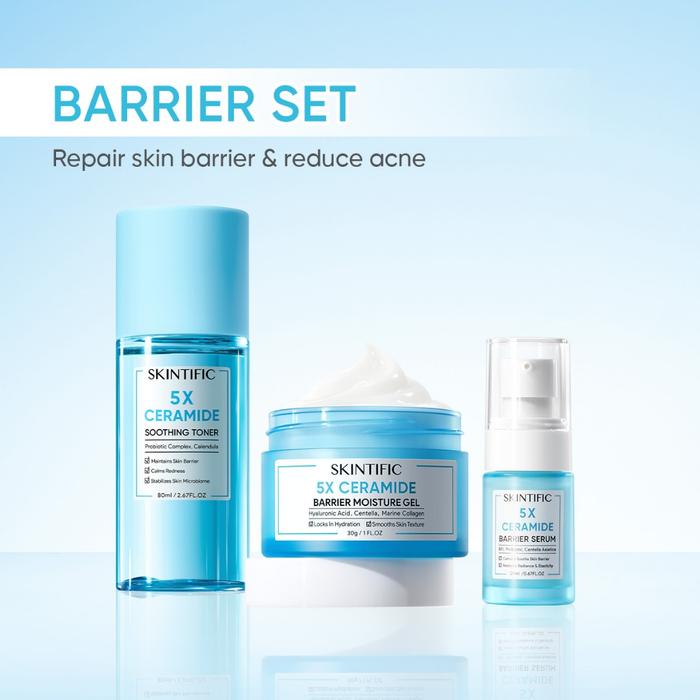 SKINTIFIC-3pcs Paket-Skincare Set Serum Moisturizer Gel Toner Sunscreen Cleansing Mouss Facial Wash
