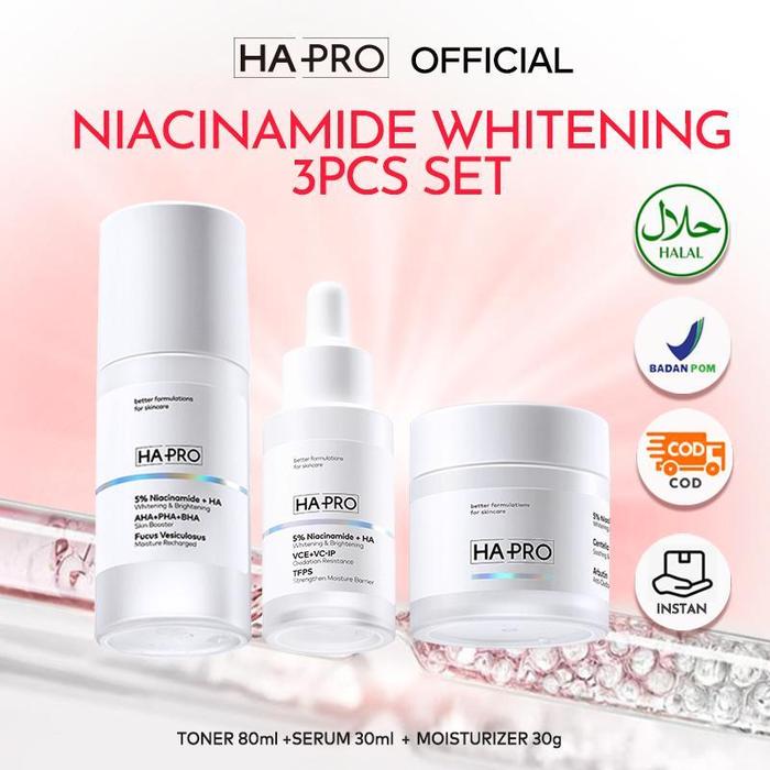 HA PRO Niacinamide Glowing 3pcs Skincare Paket Moisturizer Serum Toner Bunding Set Whitening Cream