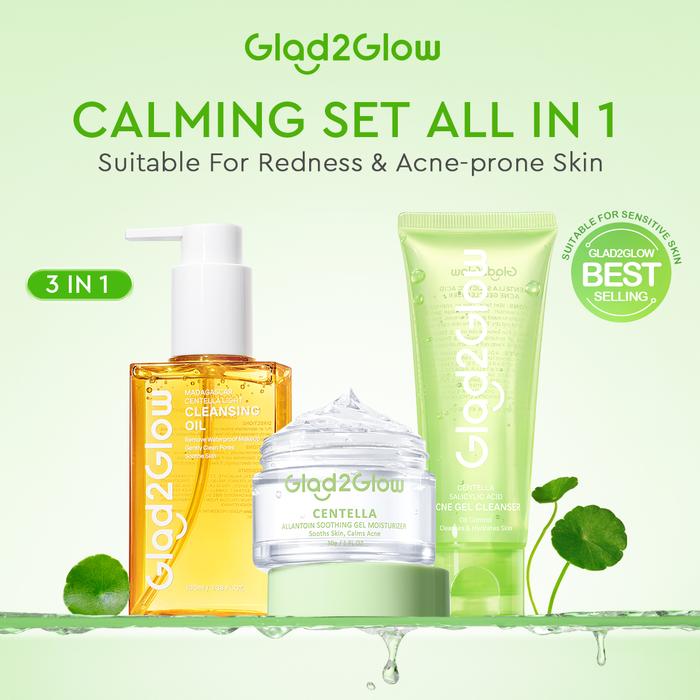 Glad2Glow Calming Set all in 1- 2/3/4/5 PCS Skincare Paket-Gel cleanser+Centella Gel