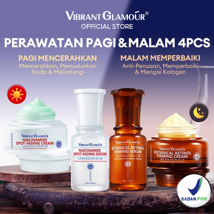Kombo 4pcs Niacinamide & Retinol+Mencerahkan & Mengurangi Kerutan Memudarkan Flek Hitam & Noda