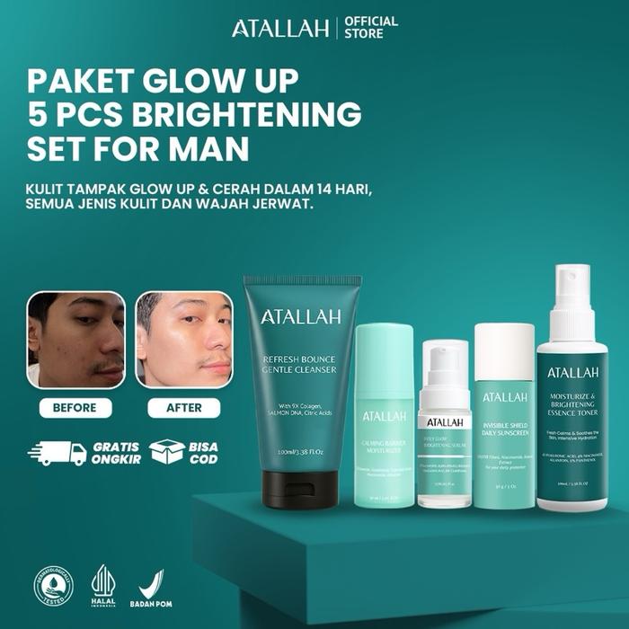 ATALLAH Paket Glow Up 5Pcs Basic Skincare Brightening set Pencerah Wajah Menghilangkan Flek Hitam