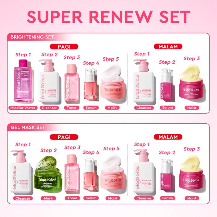 Ready Stock Lip SerumGlad2Glow Renew bundle 7in1-Brightening Moisturizer+Toner+Milk