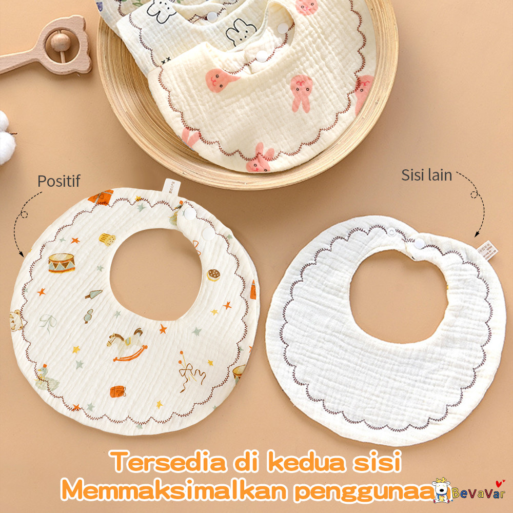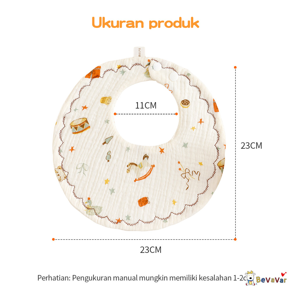 BEVAVAR Celemek Air Liur Bayi Katun Lembut Slaber Makan Bayi Nyaman Kancing Bentuk Lingkaran