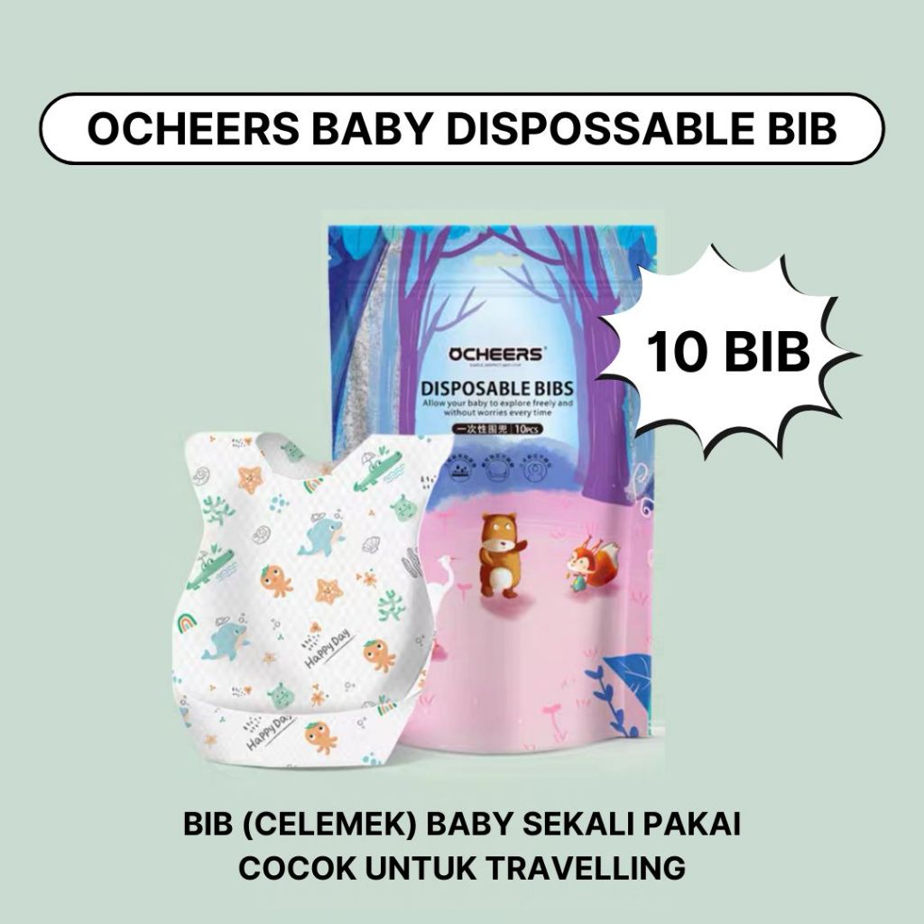 Ocheers Disposable Baby Bib (1 PACK ISI 10) Celemek Makan Bayi / Bib Bayi / Disposable Bibs Sekali Pakai / Alas Makan Ba