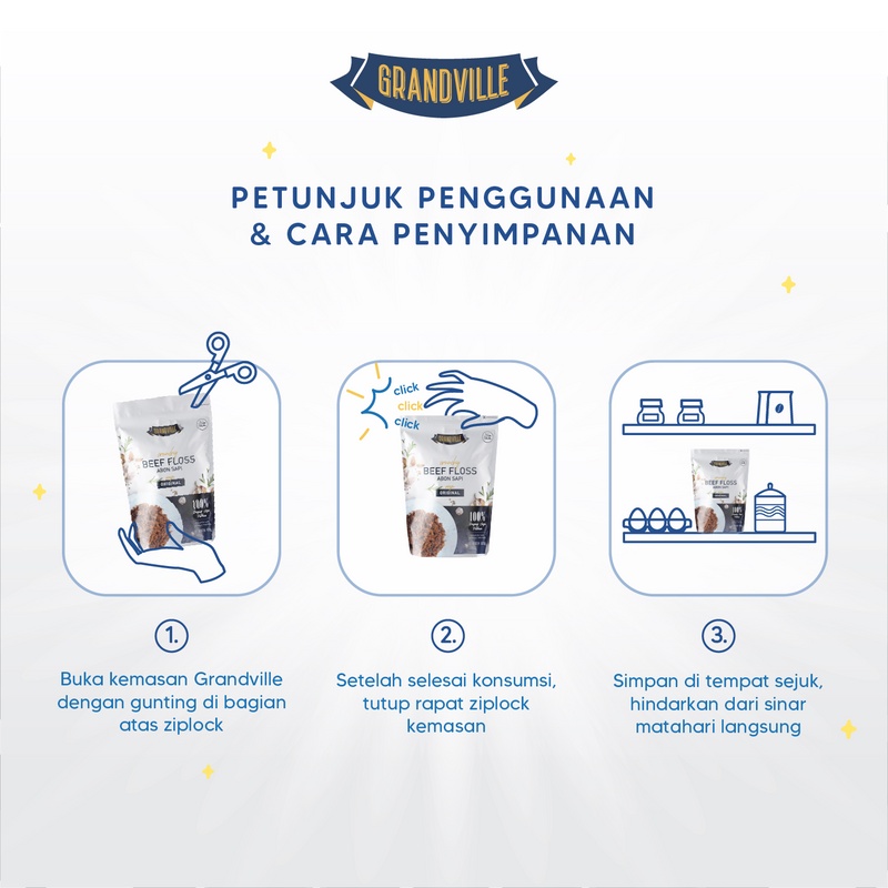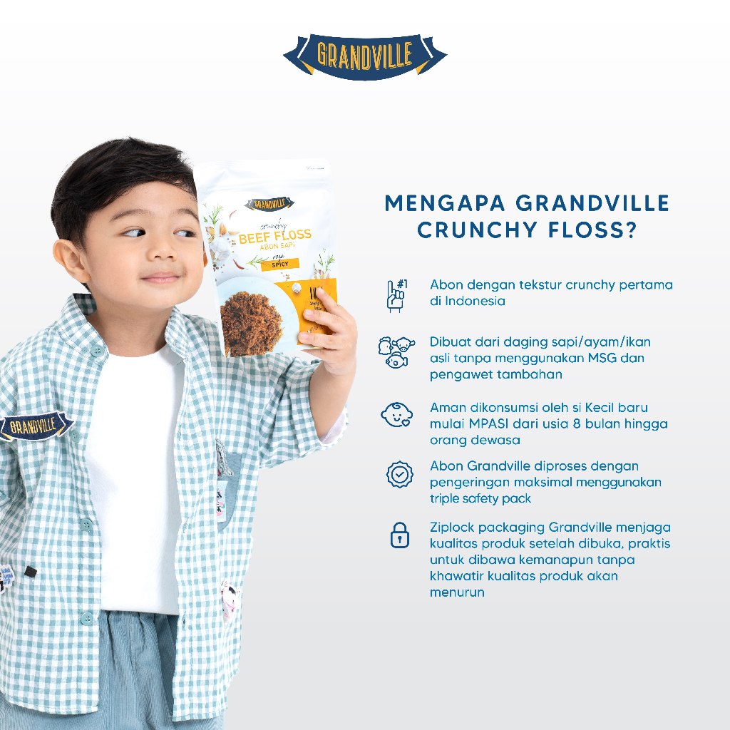 Grandville Abon Sapi Crunchy Halal Single Pack Spicy - Aman untuk anak usia MPASI
