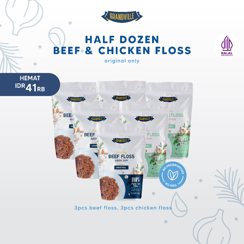 6Pc Grandville Abon Mix Abon Sapi [3Pc] & Ayam [3Pc] Crunchy Halal - Aman untuk anak usia MPASI