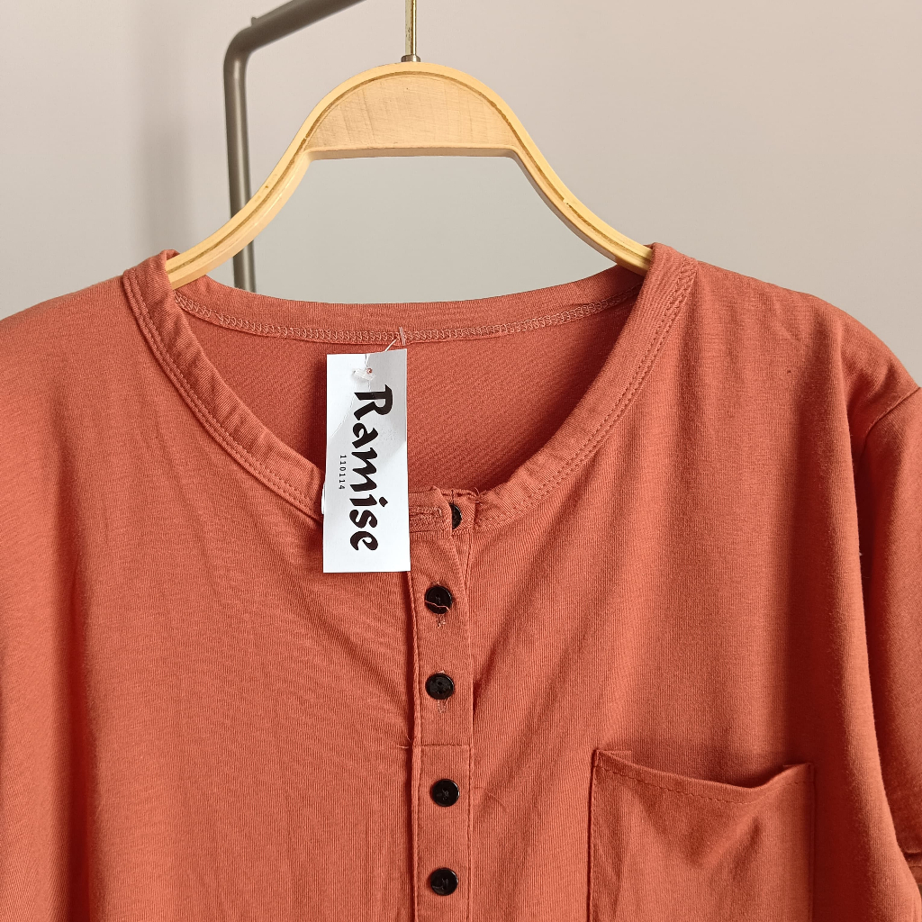 Kaos Lengan Pendek Kancing Oval Busui Friendly / Baju Atasan Wanita Kekinian / RAMISE