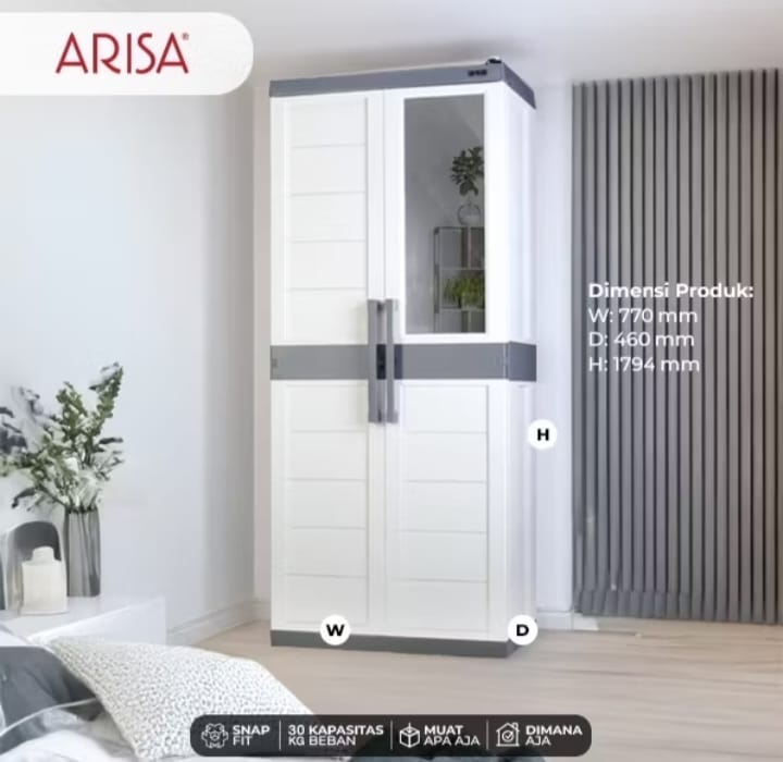 ARISA lemari plastik serbaguna elegan dua pintu CA402A GREY