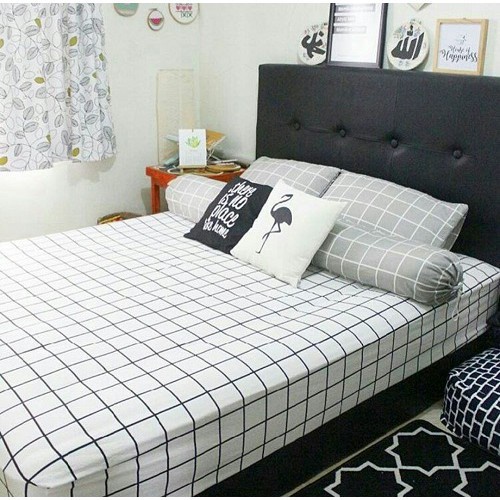 sprei kotak kotak aesthetic 90x200 100x200 120x200 160x200 180x200 sudut karet anti geser bahan halus adem set sarung bantal dan sarung guling