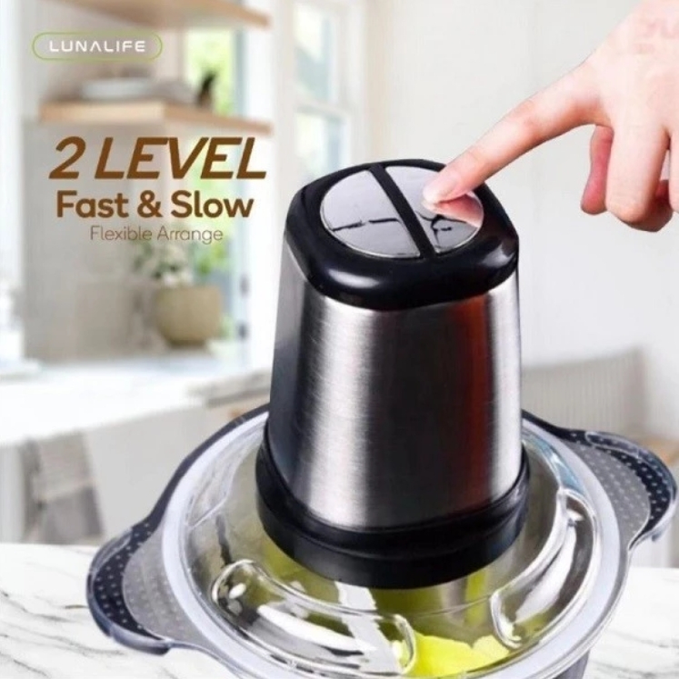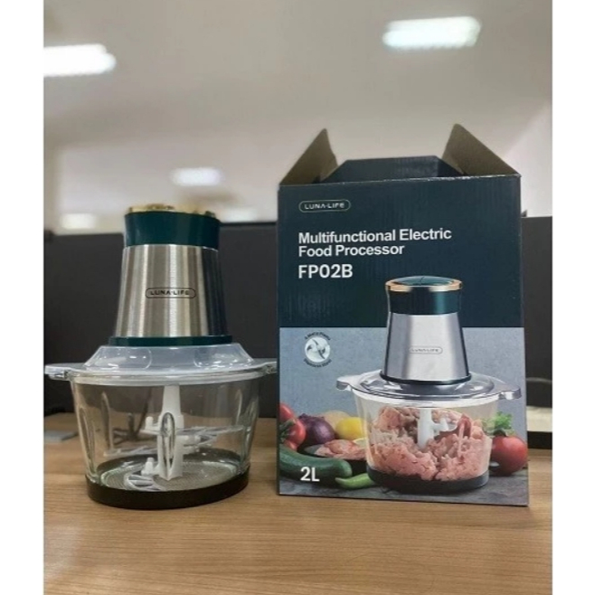 LUNALIFE Food Chopper Multifunctional Electric Food Processor FP02B 2L Chopper Kaca Blender Premium