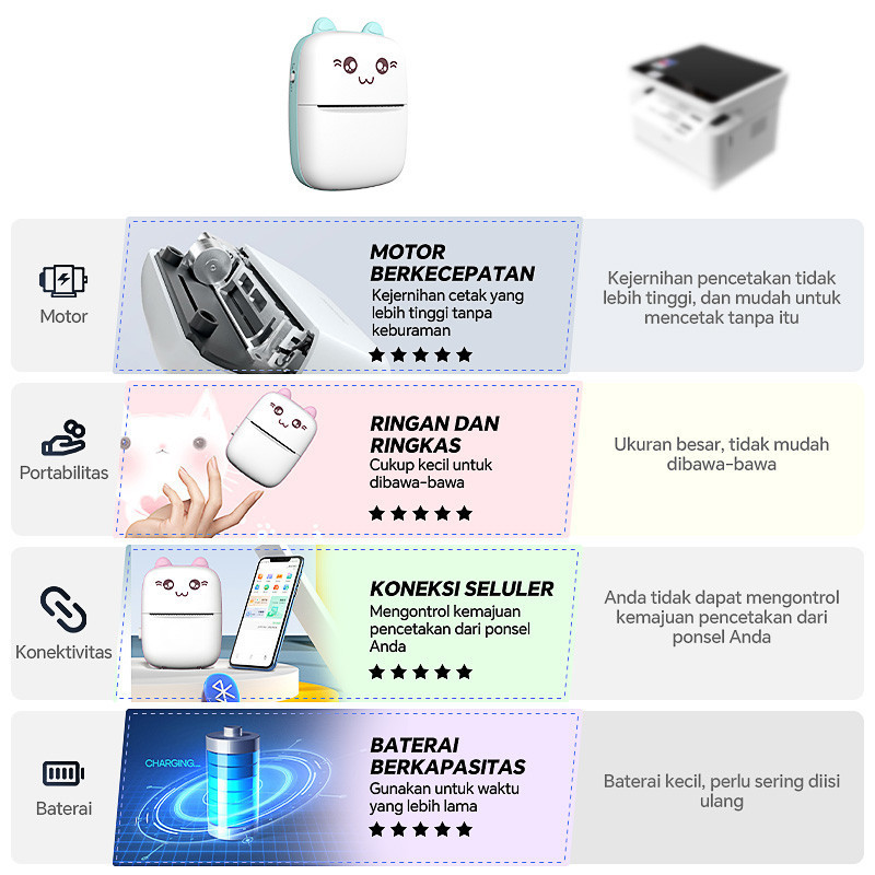 SMARTCOM Mini Printer Thermal Bluetooth 58mm X6 200DPI Cetak Gambar Foto Memo Resi Notes
