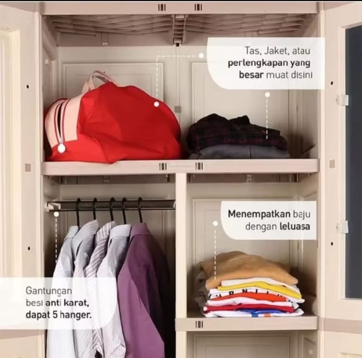 Olymplast tipe OTC 2PL/3PL Modern lemari pakaian lemari baju plastik 2 pintu dan 3 pintugantungan