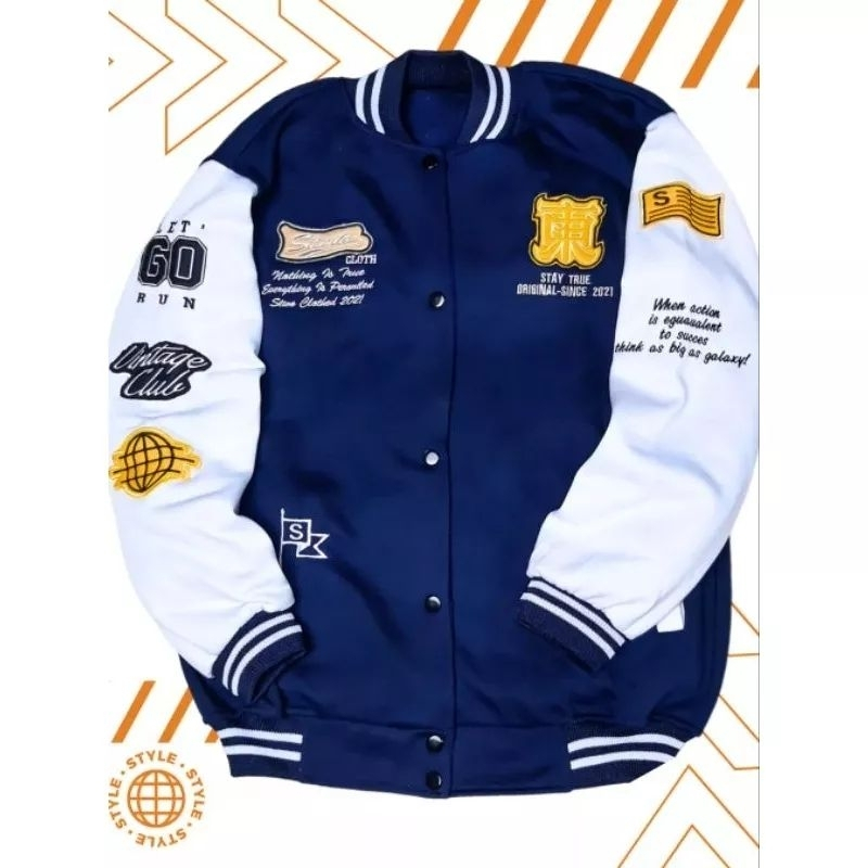 Jaket Varsity Pria Jaket Baseball Wanita Sweater Jaket Bomber Pria Full Bordir ()