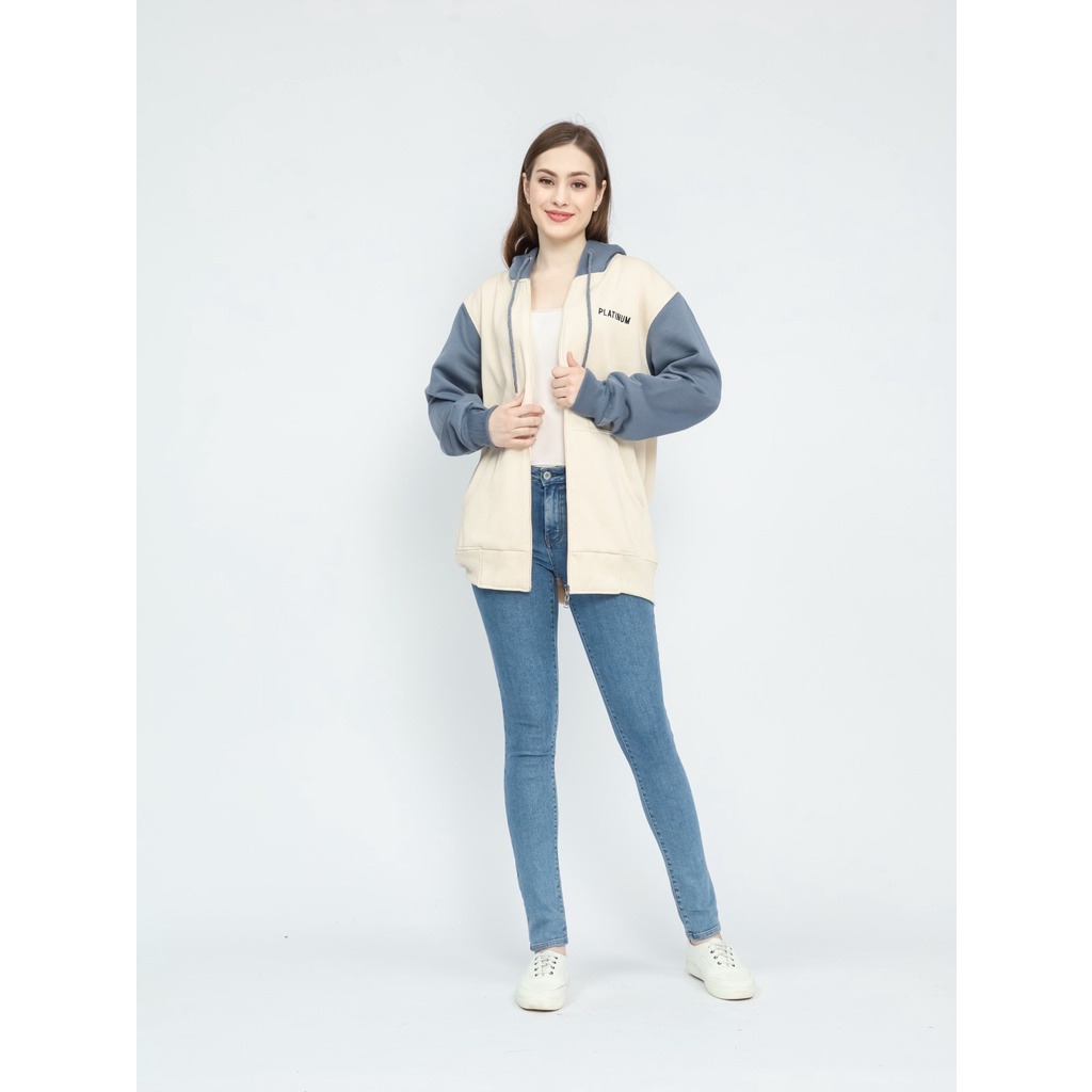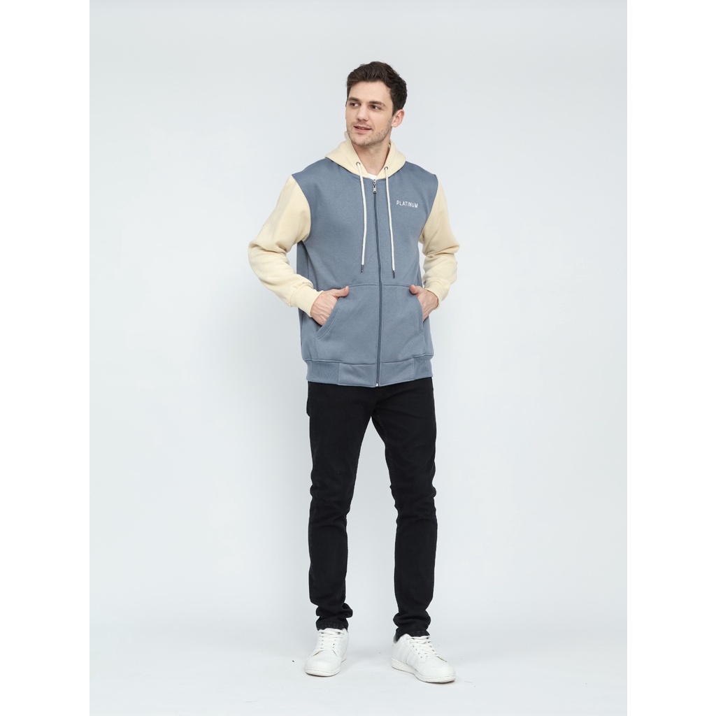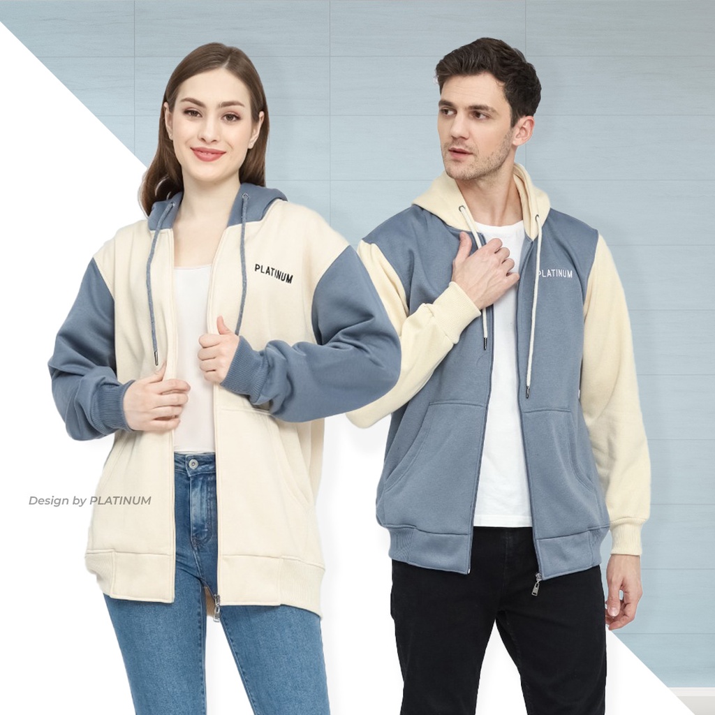 PLATINUM WORLD Zipper Hoodie Resleting Kombinasi Pria Wanita - Jaket Sweater Couple Jumbo XXL 3XL