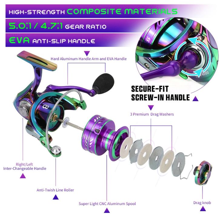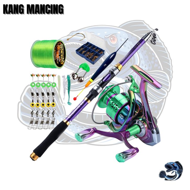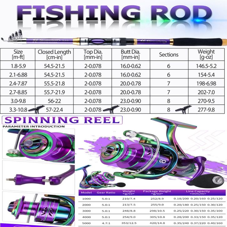 1.8m-3.3m Pancing Set Power Hand 1000-5000 Glass Fiber Metal Spool Reel Pancing 5.0:1 Max Drag 10kg