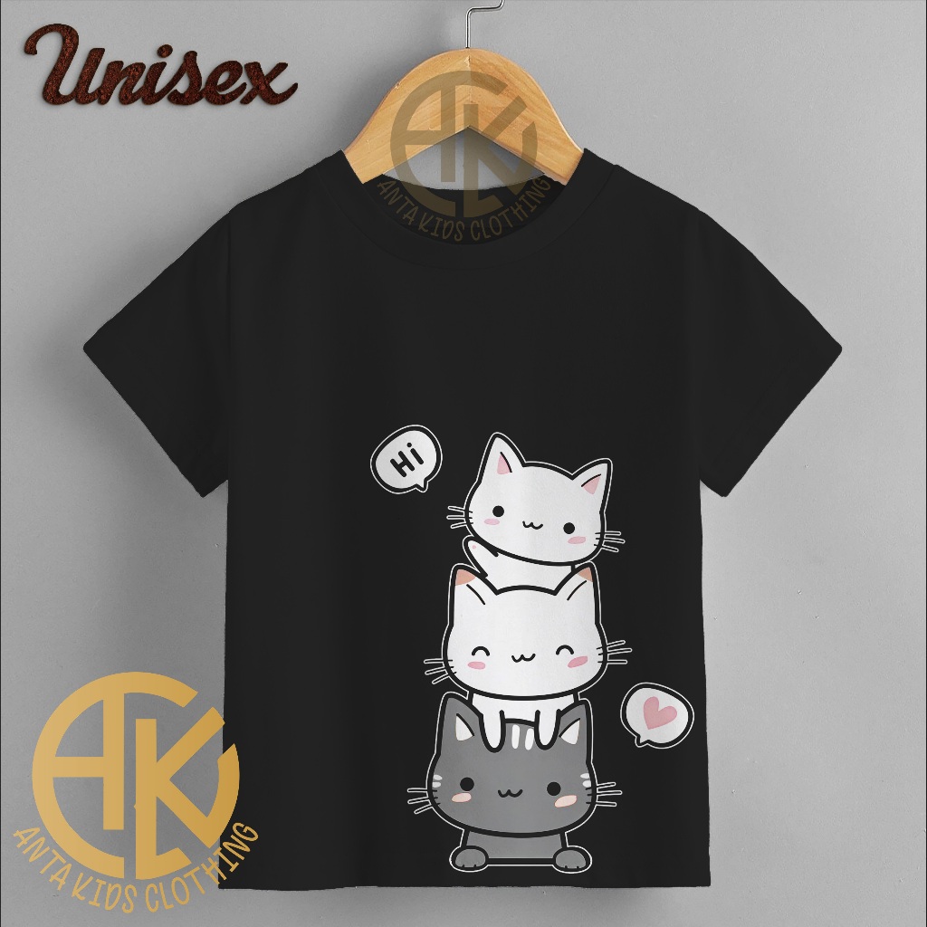 Kaos Oblong Anak Unisex Sablon Digital Motif Meow