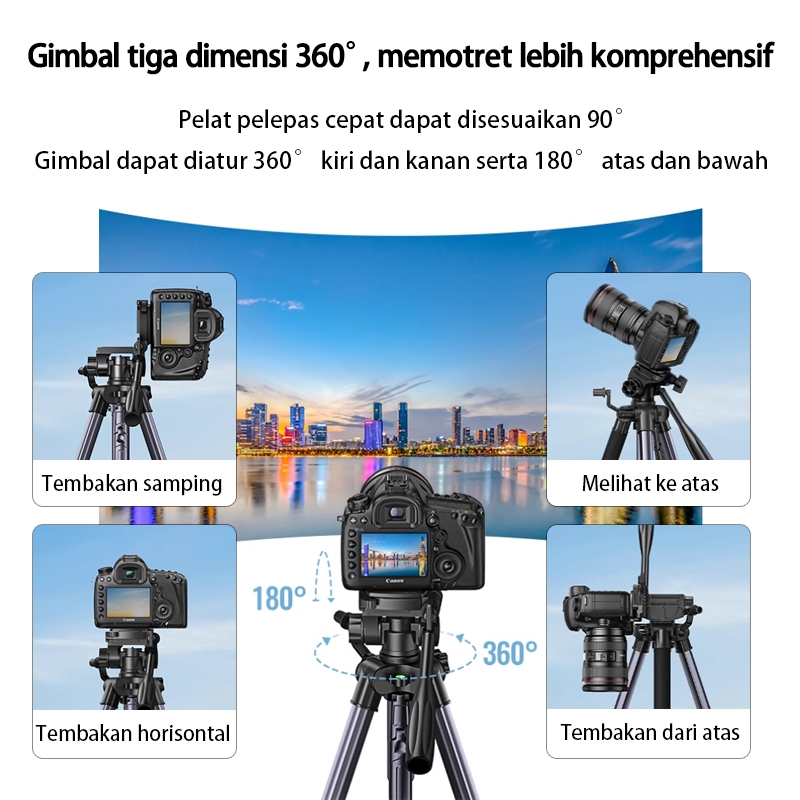 Tripod Kamera Hp Bluetooth Remote 170CM Tripot HP Aluminum Tripod with Holder+Carry Bag