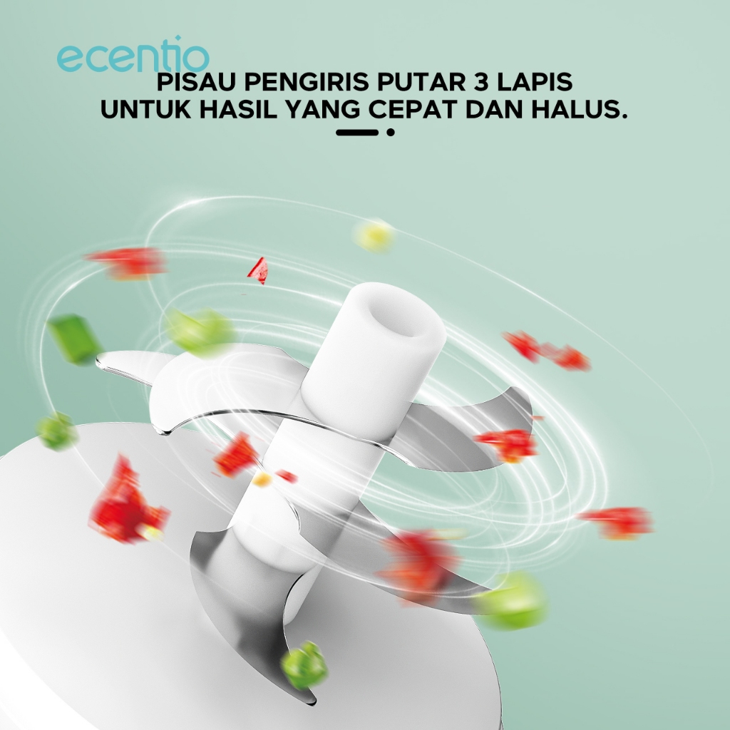 [grosir] ecentio chopper daging dan bumbu blender mini 6 pisau 250ml Portable Bumbu kapsul Alat 304 stainless Penggiling Dapur Penumbuk bawang biru gelap