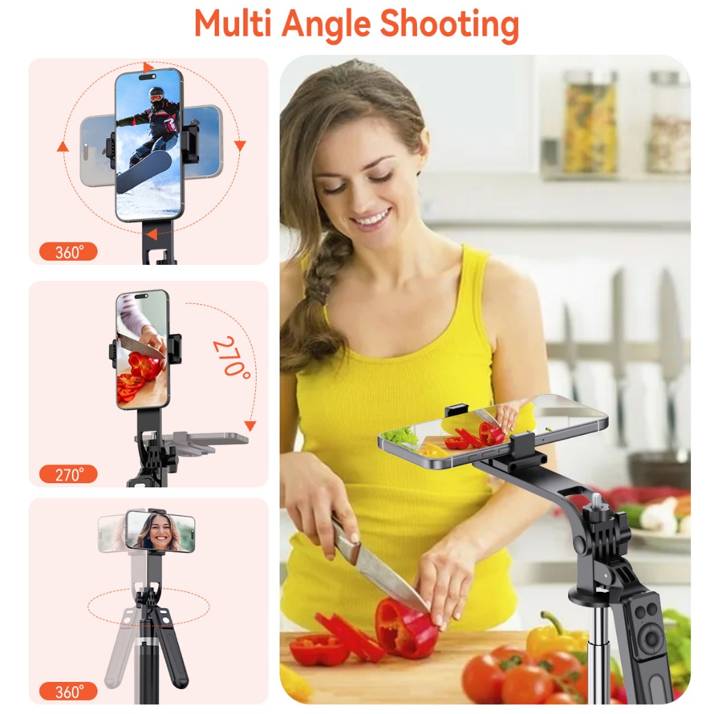 MAYY P19 Tongsis Tripod Bluetooth 1.8m Fill light Tongsis Tripod Remote Tongsis hp Selfie Stick Bluetooth 4in1 Tongsis Gimbal untuk Handphone Kamera Ring Light