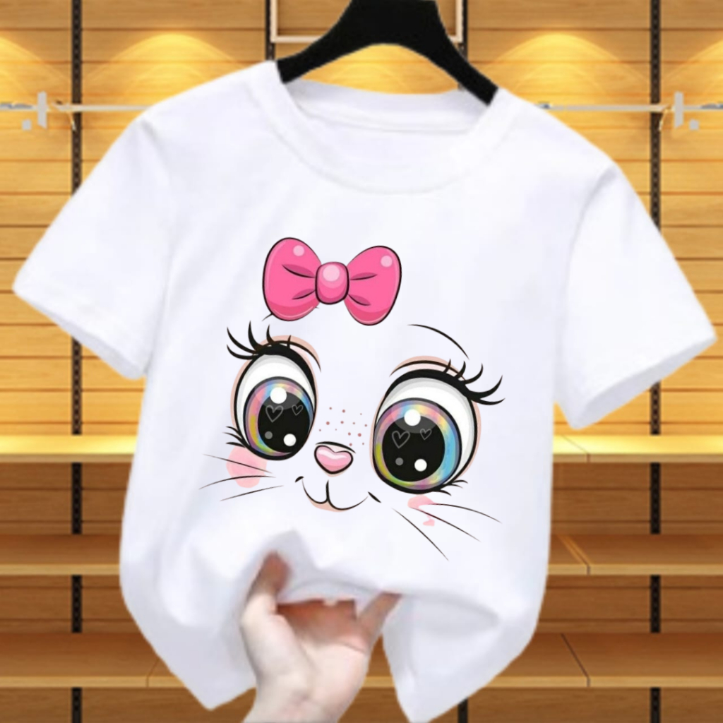Kaos Atasan Anak Perempuan Motif Little Cat Kucing Kece Lucu Usia 2-12 Tahun Oblong Baju Cewek Lengan Pendek Tshirt