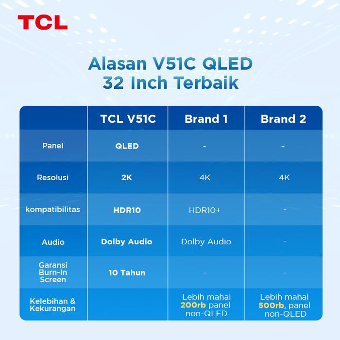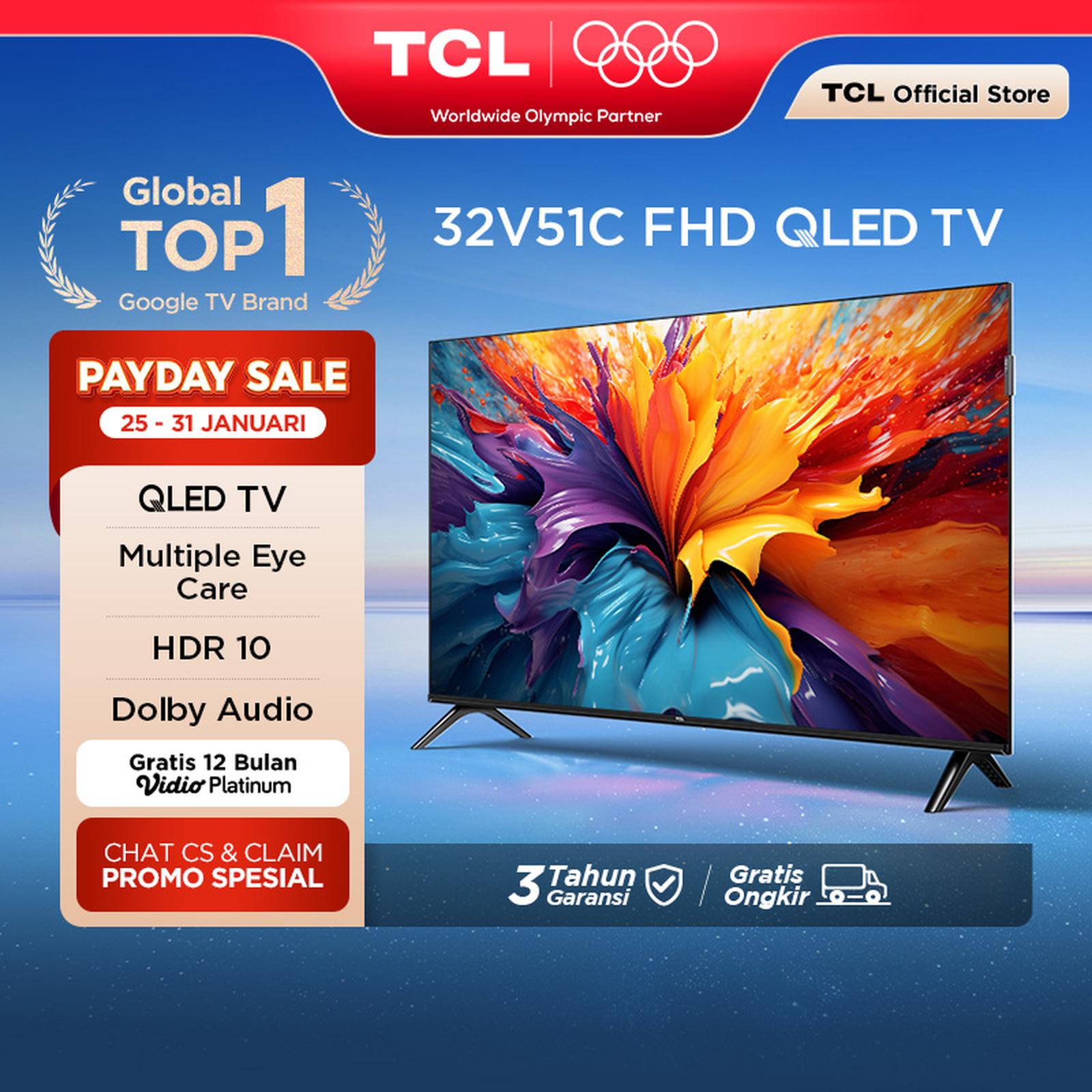 TCL QLED Google TV 32V51C FHD | HDR10 Dolby Audio Desain Bezelles | tcl google tv 32 inch