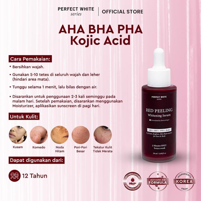 PERFECT WHITE Red Peeling Whitening Serum 10 AHA BHA PHA Kojic Acid 50ml Face and Body Essence