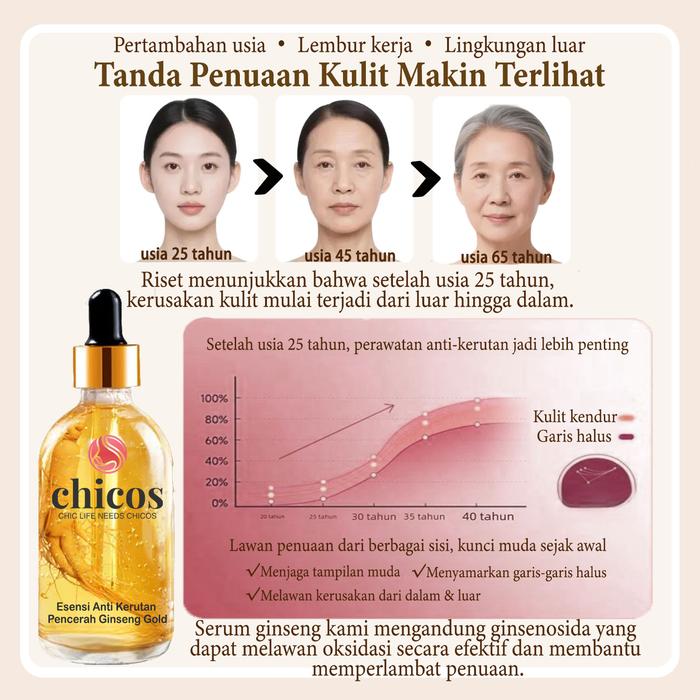 CHICOS Esensi Wajah Ginseng Esensi Pelembab Anti Penuaan Kulit Bercahaya Menenangkan 100Ml