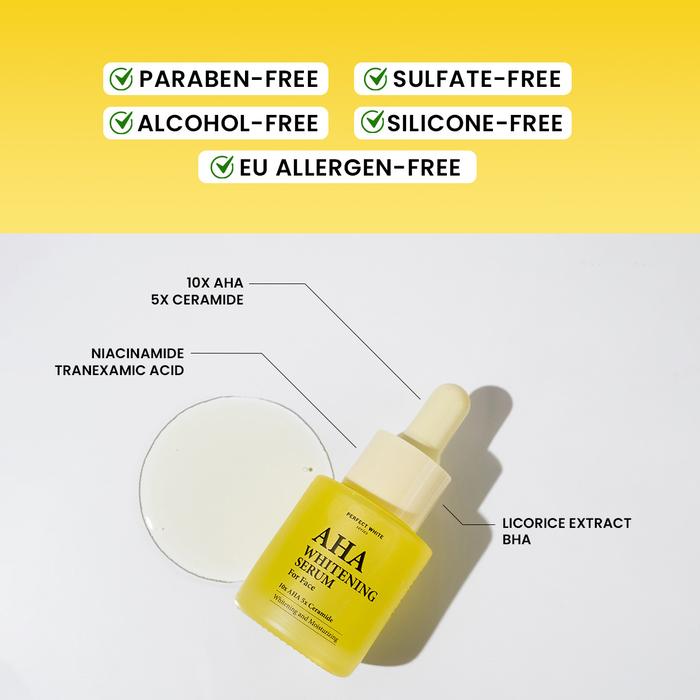 PERFECT WHITE AHA Whitening Serum For Face 10X AHA 5X Ceramide Essence Whitening, Moisturizing,