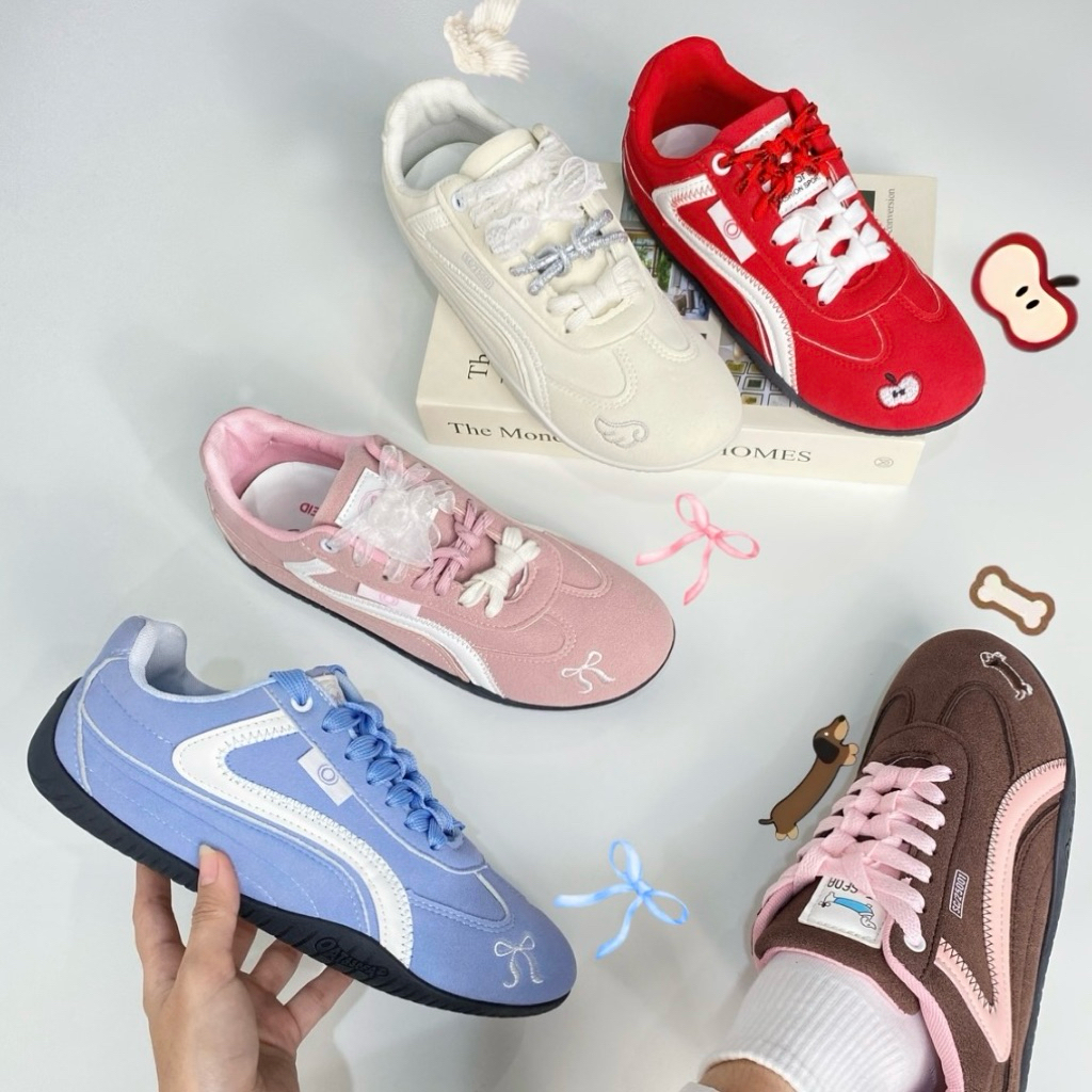 AVANCEID BALLERIES Sepatu Sneakers Wanita Casual Sepatu Outdoor Fashion Pink Coquette Ribbon Silver