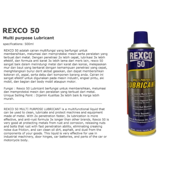 REXCO 50 500ml Cairan Pelumas 500 ml Lubricant / Pelumas Anti Karat Penetrating Oli Serba Guna Rexco50 500 ML
