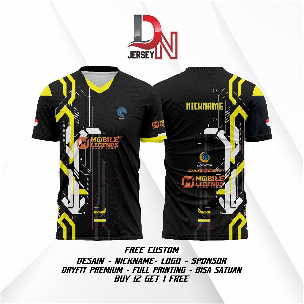 Jersey E-Sport Custom terbaru Free Request Desain Logo Nickname Game Freefire FF Mobile Legends ML PUBG
