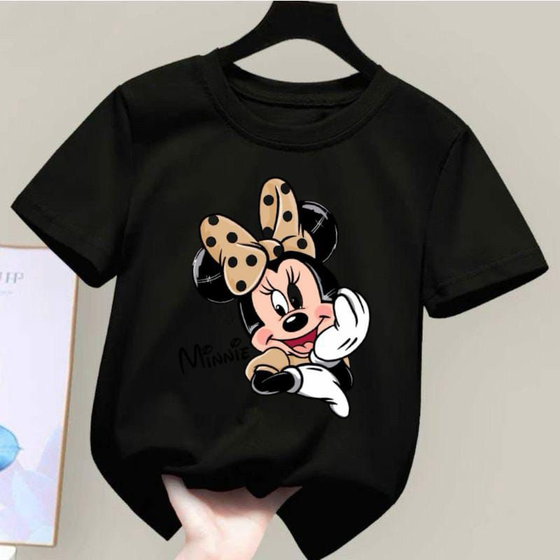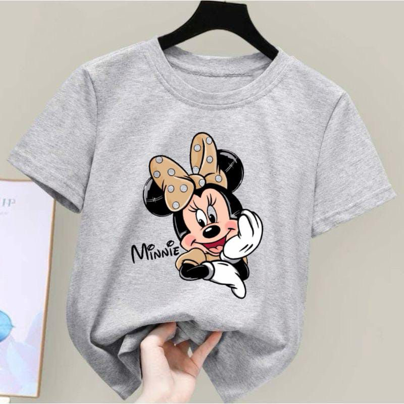 Baju Kaos Anak Perempuan Motif Mickey Mouse Minnie 100k Dapat 6pcs Untuk Umur (2-14 Tahun) Bahan Katun