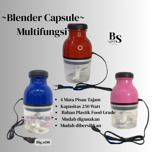 Blender Kapsul Serbaguna Penggiling Daging Low Watt 250W Kapasitas 450ML Chopper Daging Plastik Listrik