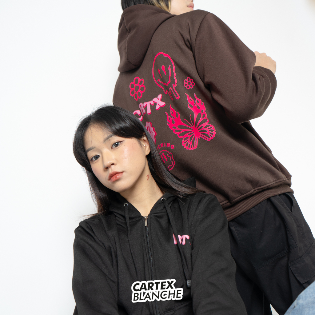 CARTEXBLANCHE - Happening Jaket Hoodie Zipper Sablon Unisex Pria - Wanita Size M - XXXL