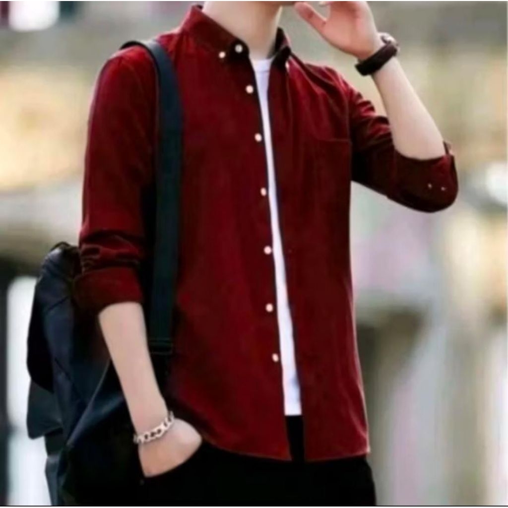 Kemeja Pria Polos Hitam Lengan Panjang Hem Cowok Katun Slimfit Fashion