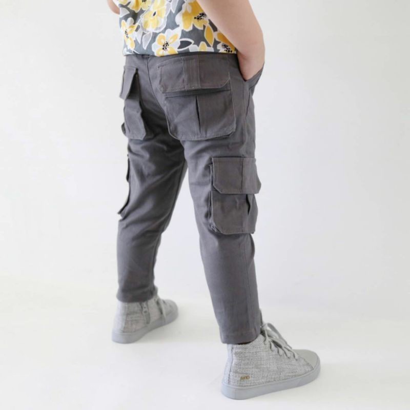 Celana Cargo Anak Panjang Slimfit Bahan Combed Stretch Melar Usia 1-12 Tahun