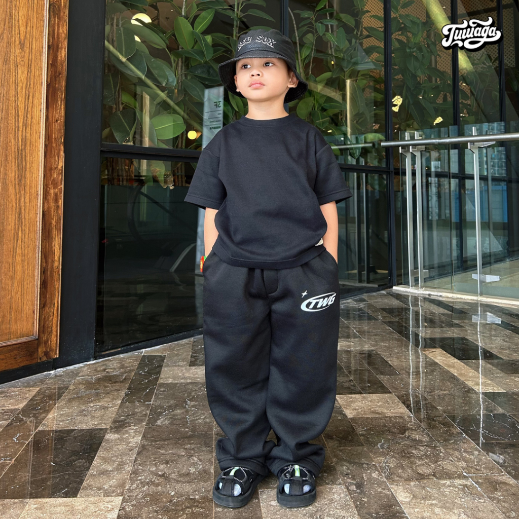 Tuwaga Kids Sweatpants Loose Celana Baggy Skena Anak Laki-laki Perempuan Balita fleece Abu Misty