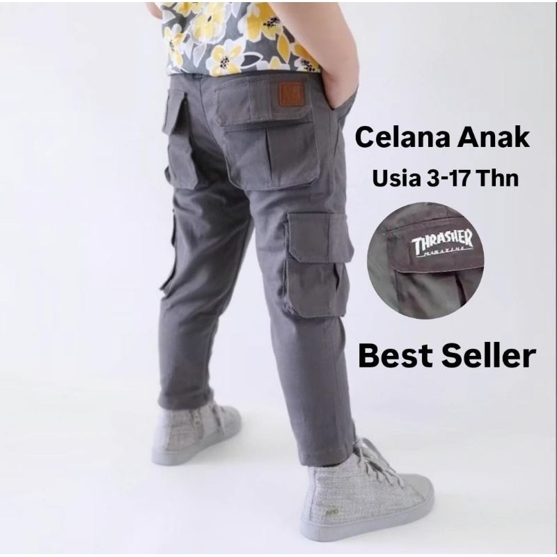 Celana Panjang Cargo Anak Usia 4-17 Tahun