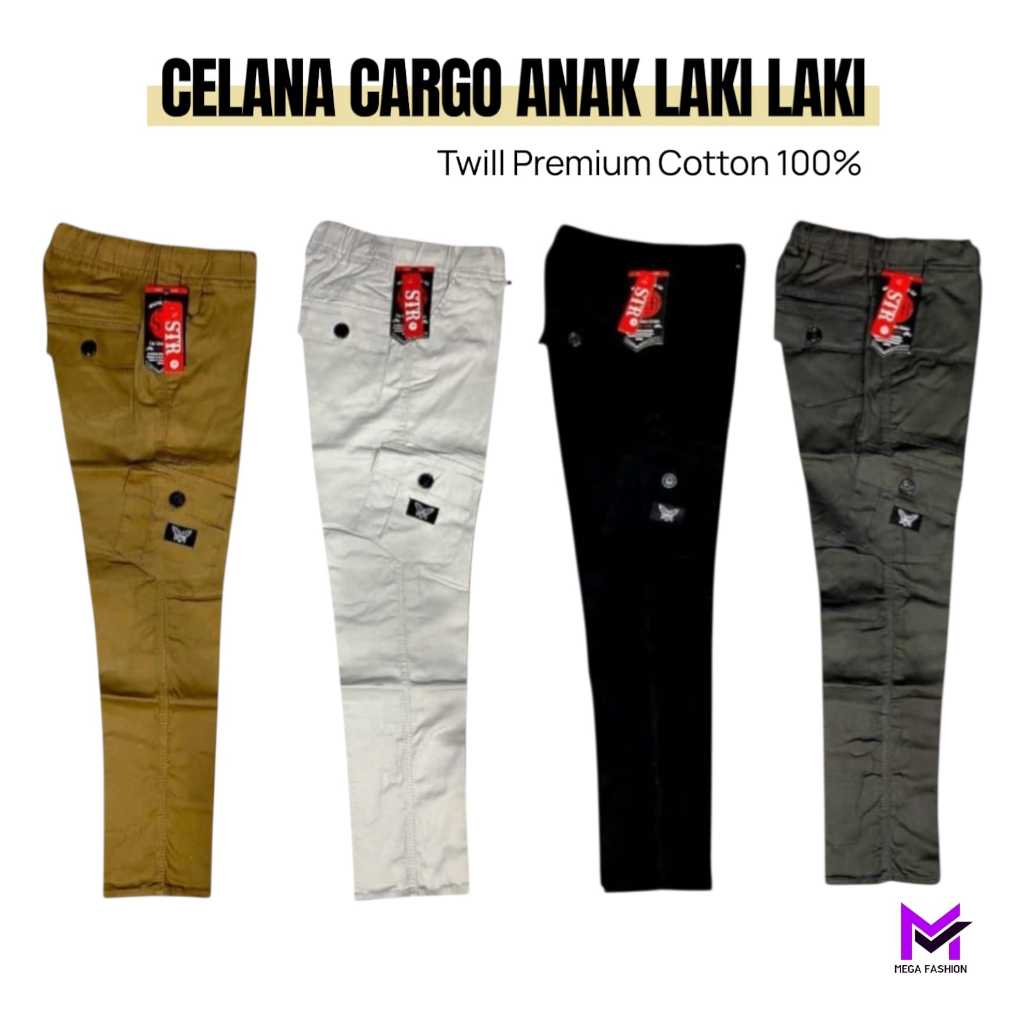 Celana Panjang Anak Cargo Umur 3-15 Tahun | KAIN TWILL STRECTH PREMIUM