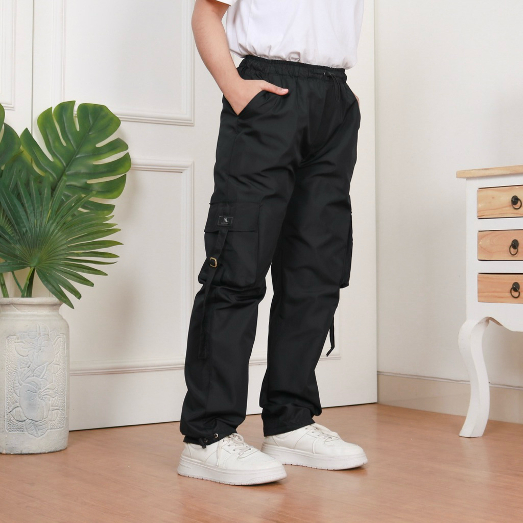Meeyoukids Celana Parasut Kargo Anak Laki-laki Perempuan 1-12 Th Celana Panjang Anak Hitam