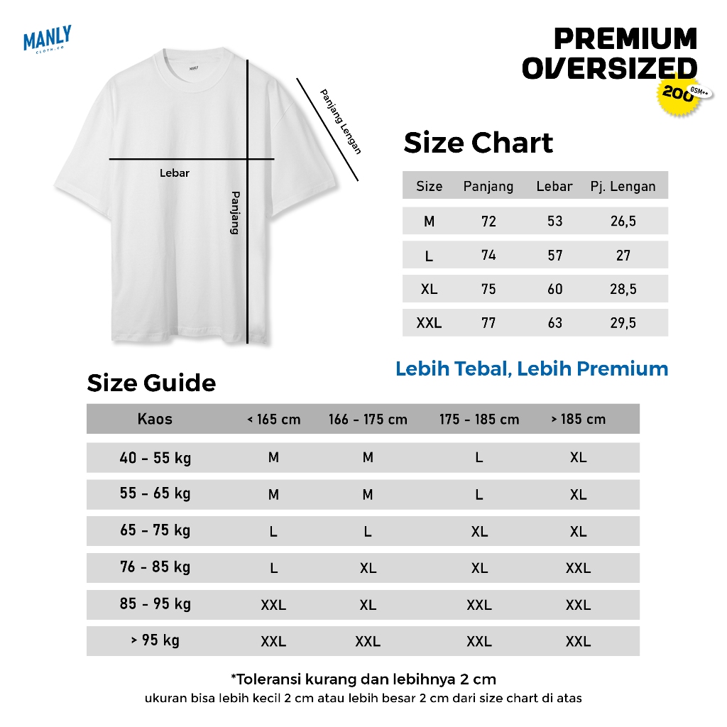 MANLY - OVERSIZED TSHIRT 200 GSM KAOS POLOS OVERSIZE HEAVY COTTON With Combed 24s 200+ gsm
