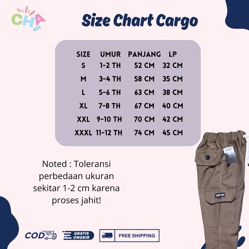 CELANA CARGO PANJANG ANAK USIA 1-13 TAHUN UNISEX LAKI-LAKI PEREMPUAN PREMIUM SAKU BANYAK