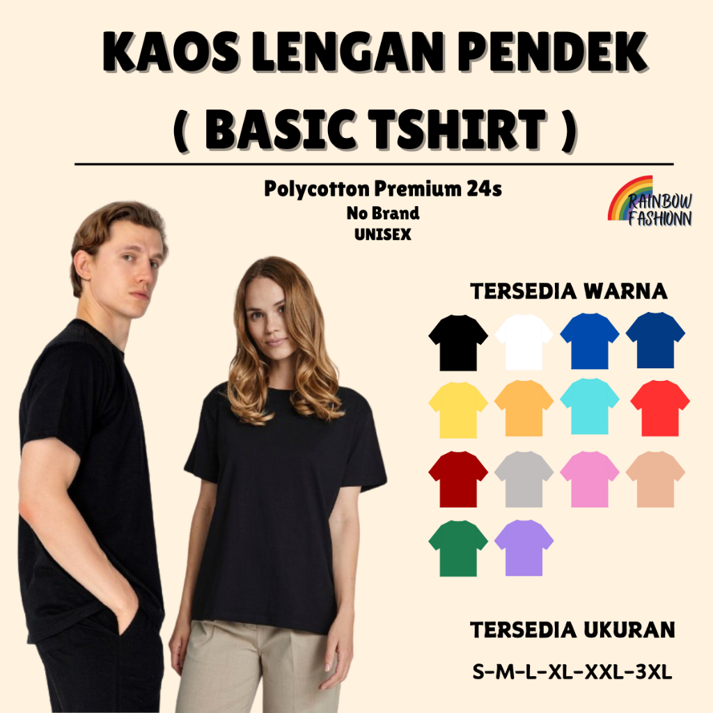 KAOS POLOS LENGAN PENDEK POLYCOTTON PREMIUM 24s - KAOS LENGAN PENDEK PRIA/WANITA UNISEX ROUND NECK REGULER FIT