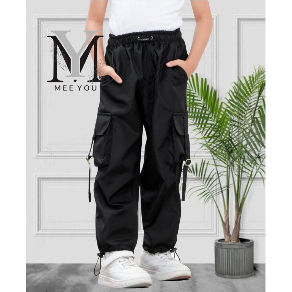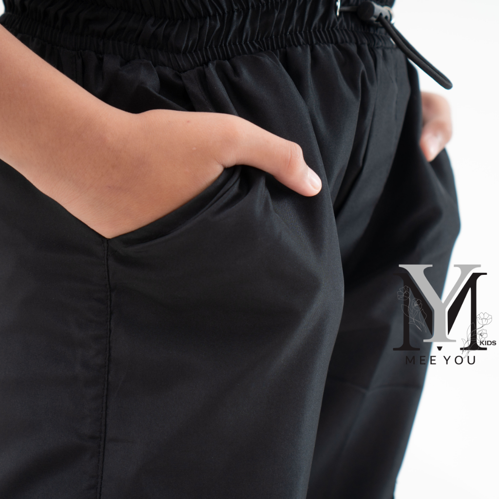 Meeyoukids Celana Parasut Kargo Anak Laki-laki Perempuan 1-12 Th Celana Panjang Anak Hitam
